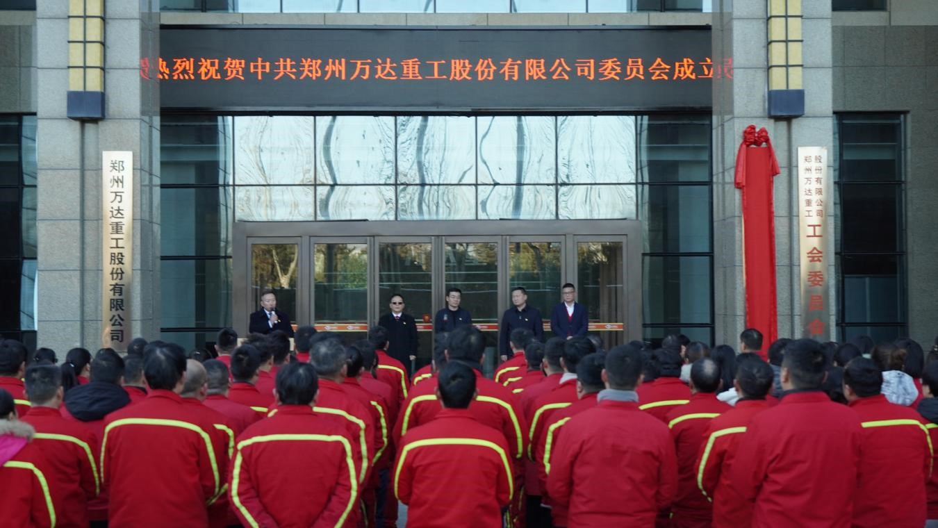2023/12/22 1666 2023年12月22日上午,鄭州萬達重工股份有限公司舉行黨委成立揭牌儀式,鄭州航空港區組織人社局副局長(主持工作)李鵬,銀河辦事處黨工委書記趙淼,股份公司黨委書
