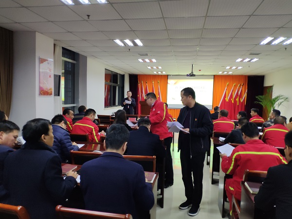 該次學習活動由萬達重工黨總支副書記于江山同志主持,共有五項議程。會議開始,首先全體參會人員共唱國歌;接著黨總支書記何清同志帶領大家重溫入黨誓詞;然后萬達重工子公司黨支部書記李懷剛同志對其黨支部的2名預備黨員轉正式黨員情況進行了匯報;接下來召開了萬達重工黨支部黨員大會,大會討論并投票選舉通過2名發展對象轉預備黨員決議;隨后分別由靳奎同志、劉超越同志、白笑棠同志、張夢珠同志帶領大家集中學習《中共鄭州市委關于以習近平新時代中國特色社會主義思想為指導全面推進黨的建設高質量發展的實施意見》。
