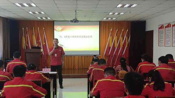 之后,為8月份入黨的黨員過政治生日,向過黨員政治生日的黨員于江山同志贈送了《黨章》。于江山同志分享了在萬達(dá)工作以來的思想、工作體會,表示將始終發(fā)揮黨員先鋒模范帶頭作用,在何書記的帶領(lǐng)下,全體員工匯聚起加快發(fā)展的強大動力,提質(zhì)增效,提早實現(xiàn)公司年度經(jīng)營目標(biāo)和公司愿景。