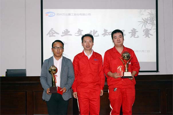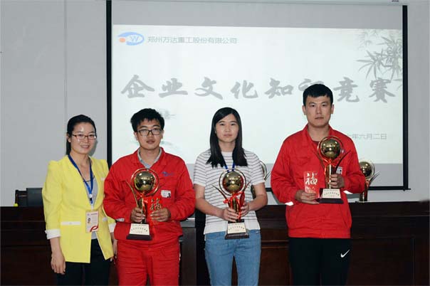 本次企業(yè)文化知識競賽共持續(xù)三個半小時,由控股公司友聯(lián)智能、子公司萬達(dá)科技、萬達(dá)邁克及總公司萬達(dá)重工的14個部門共同組成的15支代表隊伍共66人參加了比賽。比賽評委由公司董事長、書記何清、工會主席于江山、總工袁希海、人力資源部經(jīng)理趙書麗擔(dān)任,過程精彩、激烈,觀眾熱情高漲,各選手互相配合,團結(jié)協(xié)作。最終在“公開,公正,公平”的原則下,經(jīng)過初露鋒芒、心有靈犀、當(dāng)機立斷、精誠合作四輪的角逐產(chǎn)生優(yōu)勝獎團隊:行政管理部代表隊榮獲一等獎,萬達(dá)邁科、生產(chǎn)管理部一隊獲得二等獎,物流服務(wù)中心、知識體系二期聯(lián)合部及質(zhì)量管理部榮獲三等獎。