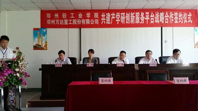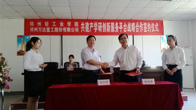2016年9月21日,由鄭州萬達重工股份有限公司與鄭州輕工業學院共同建立的產學研創新服務平臺戰略合作簽約揭牌儀式在鄭州萬達重工股份有限公司順利舉行。