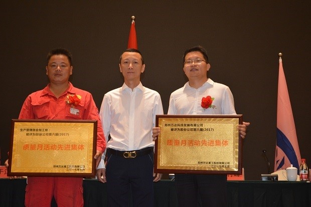 按照會議議程,大會對鄭州萬達科技發展有限公司、生產管理部金加工模塊頒發了“第六屆質量月活動先進集體”榮譽獎牌,向王明錄、孫鵬飛頒發了“第六屆質量月活動優秀個人”榮譽證書并對丁西彬頒發了“中石油年度投標工作優秀個人”榮譽證書;并由丁西彬代表獲獎人員致獲獎感言,股份公司領導與先進集體、優秀個人進行了合影留念。