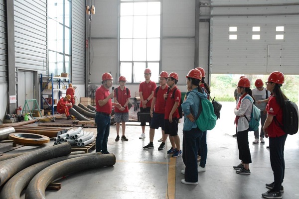 北大學生黨員“圓夢先鋒”鴻雁計劃一行先后深入堆焊生產(chǎn)車間進行了參觀,薛總就公司復合堆焊設備和技術、管件生產(chǎn)設備和技術向學生們進行了詳細講解。隨后,北大學生黨員參觀了萬達重工二樓黨員活動室、黨群活動紅色長廊、運動健身室等一千多平方米的黨群基地。于副書記向參觀組一行簡要介紹了萬達重工黨建基地建設情況。