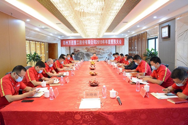 2020年6月16日上午九點整,鄭州萬達重工股份有限公司2019年度股東大會在公司行政樓8樓貴賓室召開。公司董事長、書記何清,董事、總經理張付峰,監事會主席于江山與各股東、董事、監事參加會議。