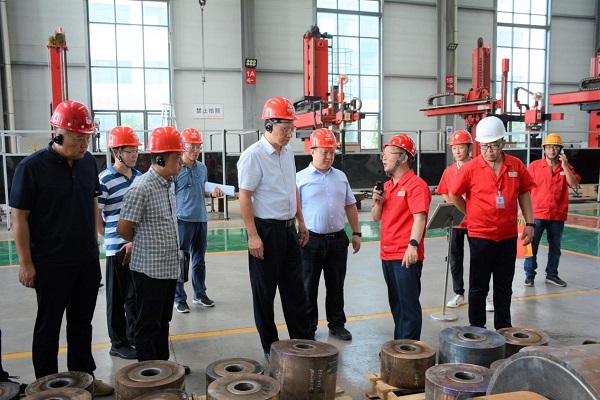 魏學(xué)彬副主任一行先后深入堆焊智能制造車間、彎制車間、機加工、物流倉儲等生產(chǎn)車間進行了參觀,實地查看了公司先進的生產(chǎn)設(shè)備、繁忙而有序的生產(chǎn)環(huán)境,股份公司董事長、書記何清就公司發(fā)展規(guī)劃、科技創(chuàng)新、市場布局、生產(chǎn)設(shè)備、技術(shù)及生產(chǎn)能力情況向調(diào)研組一行進行了詳細匯報,調(diào)研組一行對萬達重工現(xiàn)代化的管理理念,高遠的發(fā)展目標(biāo),一流的生產(chǎn)能力表示肯定,勉勵企業(yè)進一步提升創(chuàng)新能力,努力把企業(yè)做優(yōu)做強做大。