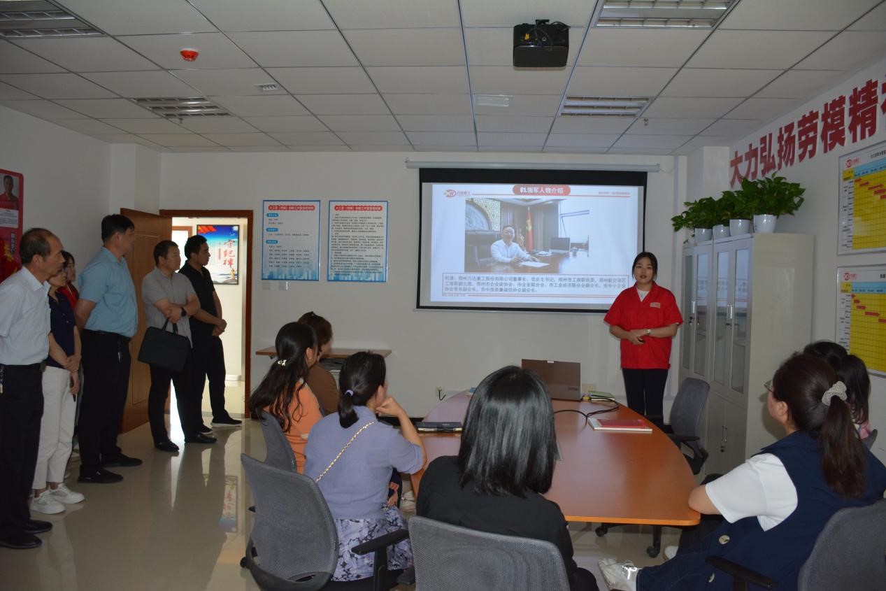 張科長一行首先來到二樓黨群基地,股份公司工會于主席依次介紹了黨群之家、職工書屋、勞模創(chuàng)新工作室、黨總支活動室、黨建紅色長廊等各功能室及工會活動開展情況。著重對萬達重工堅持以“黨建帶工建”的工作格局,突出勞模工匠創(chuàng)新工作室示范引領作用發(fā)揮情況進行了重點介紹。大家對萬達重工“何清勞模創(chuàng)新工作室”堅持自主研發(fā),突破技術壁壘,不斷提升企業(yè)核心競爭力所取得的驕人成績贊嘆不已。