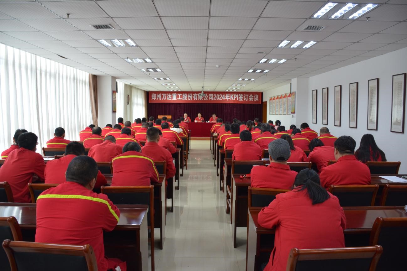 為充分發揮績效考核“指揮棒”、“風向標”、“助推器”和“測量儀”作用,2024年1月23日上午,鄭州萬達重工股份有限公司在行政綜合樓二樓會議室召開2024年KPI簽訂會議。股份公司黨委書記、董事長何清,股份公司董事、總經理張付峰出席會議,股份公司部門班組長以上管理人員及部門員工代表參加了本次會議。會議由監事會主席、工會主席于江山主持會議。
