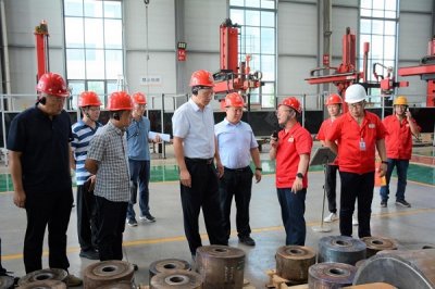 2021/08/11 1042 2021年8月10日下午,鄭州市副市長吳福民、市工信局副局長谷振風、航空港區(qū)管委會副主任魏學彬等領導蒞臨萬達重工開展萬人助萬企調研指導工作,鄭州萬達重工股份有限公司董事長、書記何清、總經理張付峰及公司高管陪同參加。 吳福民副市長一行深入堆焊智能制造車間、彎制車間等生產車間進行參觀指導,實地了解公司的生產運營情況,股份公...