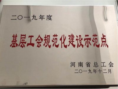 鄭州萬達重工股份有限公司工會榮獲河南省“2019年度基層工會規范化建設示范點”稱號