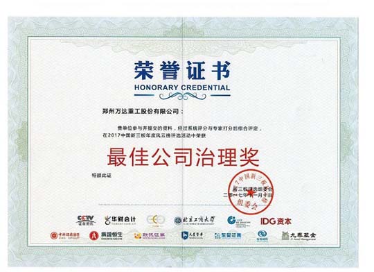 熱烈祝賀鄭州萬達(dá)重工股份有限公司榮獲 “2017年中國新三板年度風(fēng)云榜”最佳公司治理獎