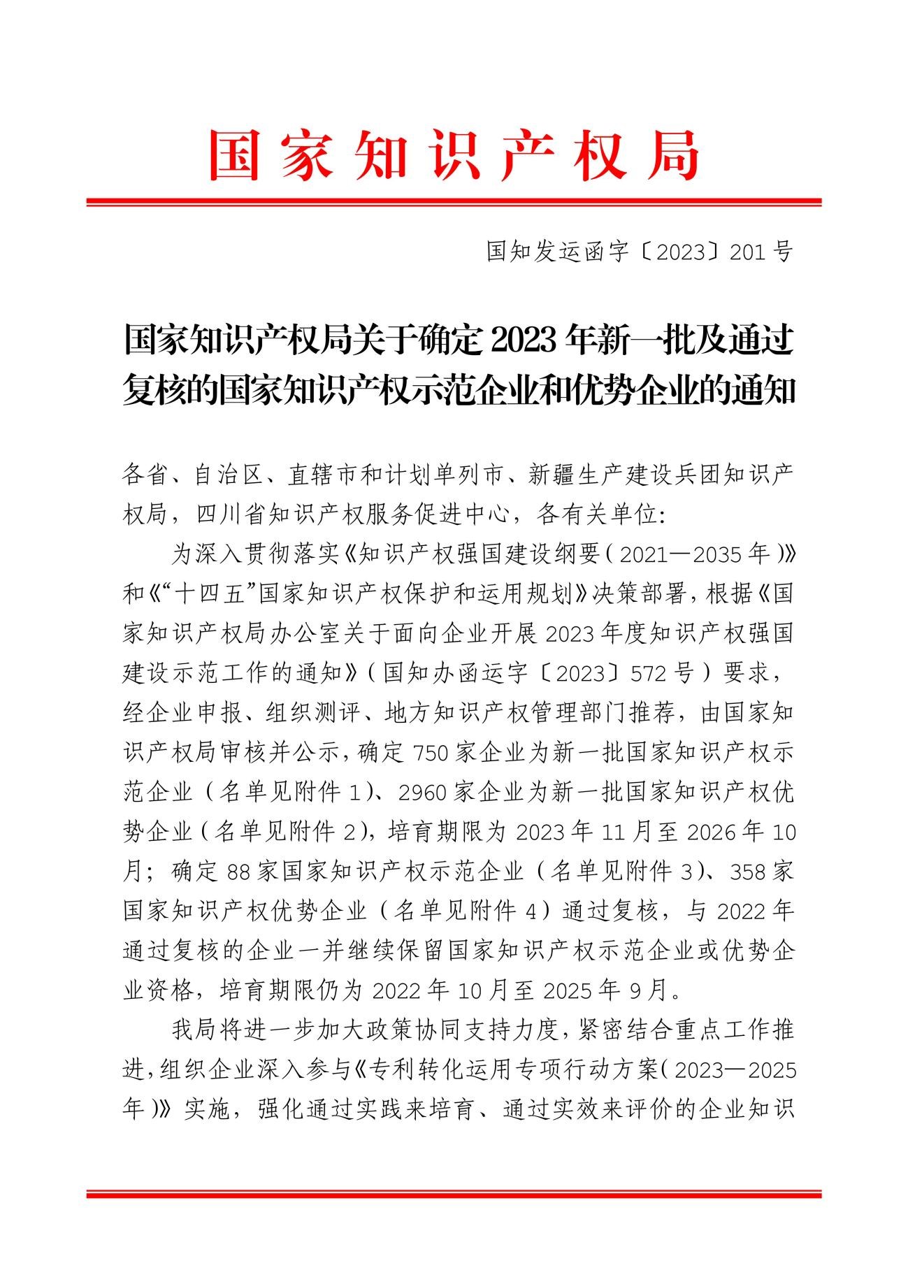 2023/12/08 1070 2023年11月29日,國家知識產權局公布了2023年度國家知識產權示范企業和優勢企業評定結果,鄭州萬達重工股份有限公司(以下簡稱“萬達重工&rdq