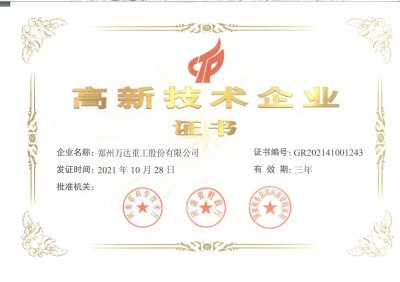 熱烈祝賀鄭州萬達重工股份有限公司順利通過“高新技術企業”認定