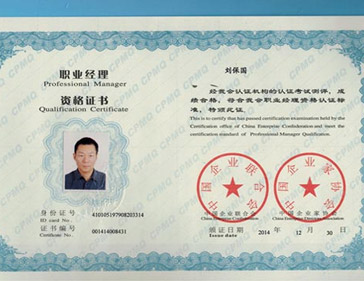 熱烈祝賀我公司劉保國等6位同志獲得職業(yè)經(jīng)理人資格證書